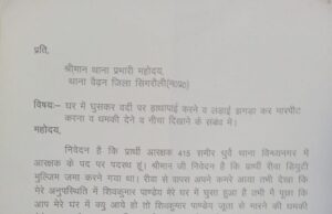 सिंगरौली जिले के थाना विंध्यनगर में आरक्षक पद पर पदस्थ समीर धुर्वे 415 ने आरोप लगाया है कि...