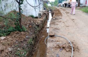 नाली निर्माण में ठेकेदार लगा रहा आठ एमएम की सरिया जमीन...