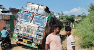 घिवही रेलवे क्रॉसिंग पर गड्ढों से जाम, 18 ट्रक फंसे विभाग की...