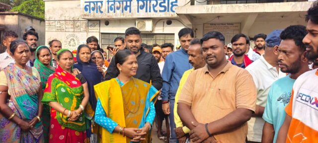 गिरिडीह। नव निर्वाचित महापौर प्रमिला मेहरा आज नगर निगम कार्यालय पहुंचीं, जहां निगम कर्मियों ने पूरे जोश और उत्साह के साथ उनका भव्य स्वागत किया। कर्मचारियों ने उन्हें बुके और माला पहनाकर जोरदार अभिनंदन किया।