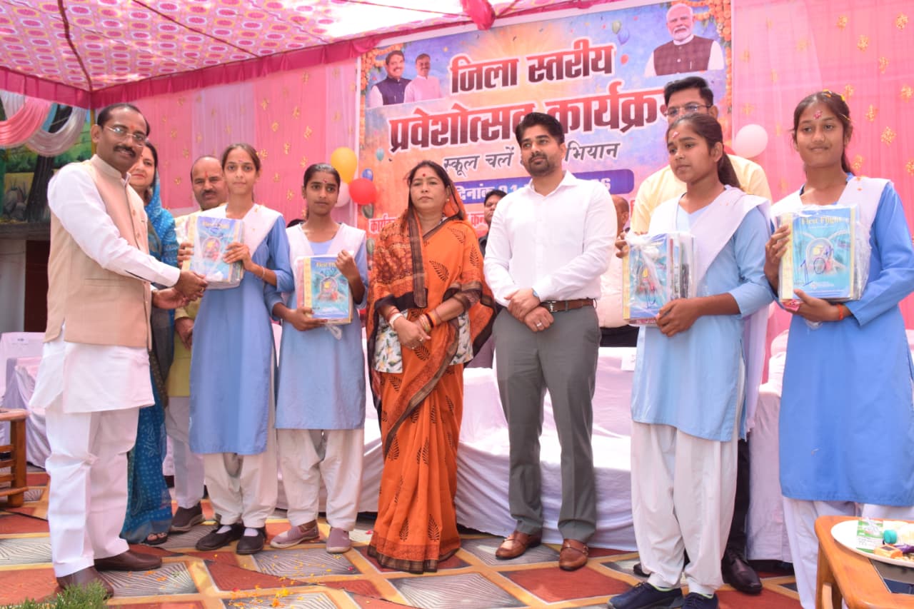 इस विशेष अवसर पर राज्यमंत्री श्रीमती सिंह ने विद्यार्थियों का तिलक लगाकर उनका अभिनंदन किया और उनके उज्ज्वल भविष्य के लिए आशीर्वाद दिया। कार्यक्रम के दौरान राज्यमंत्री श्रीमती राधा सिंह ने विद्यार्थियों को शासन की ओर से निःशुल्क पाठ्यपुस्तकों और स्टेशनरी किट का वितरण किया। साथ ही, पात्र छात्र-छात्राओं को आवागमन की सुविधा हेतु निःशुल्क साइकिलें भी प्रदान की । राज्यमंत्री ने अपने उद्बोधन में कहा कि शिक्षित समाज ही सशक्त राष्ट्र का आधार है और प्रदेश सरकार हर बच्चे को गुणवत्तापूर्ण शिक्षा सुनिश्चित करने के लिए प्रतिबद्ध है। उन्होंने ने शिक्षकों और अभिभावकों से अपील की कि वे मिलकर यह सुनिश्चित करें कि क्षेत्र का कोई भी बच्चा शिक्षा की मुख्यधारा से वंचित न रहे। उन्होंने विशेष रूप से बालिकाओं की शिक्षा और उनके नामांकन पर जोर दिया।